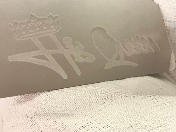 A matching pair that celebrates love and royalty. These etched panels feature graffiti-inspired lettering and crown motifs, designed to make a bold statement in any space. Perfect for couple gifts, bedroom décor, or personal empowerment.